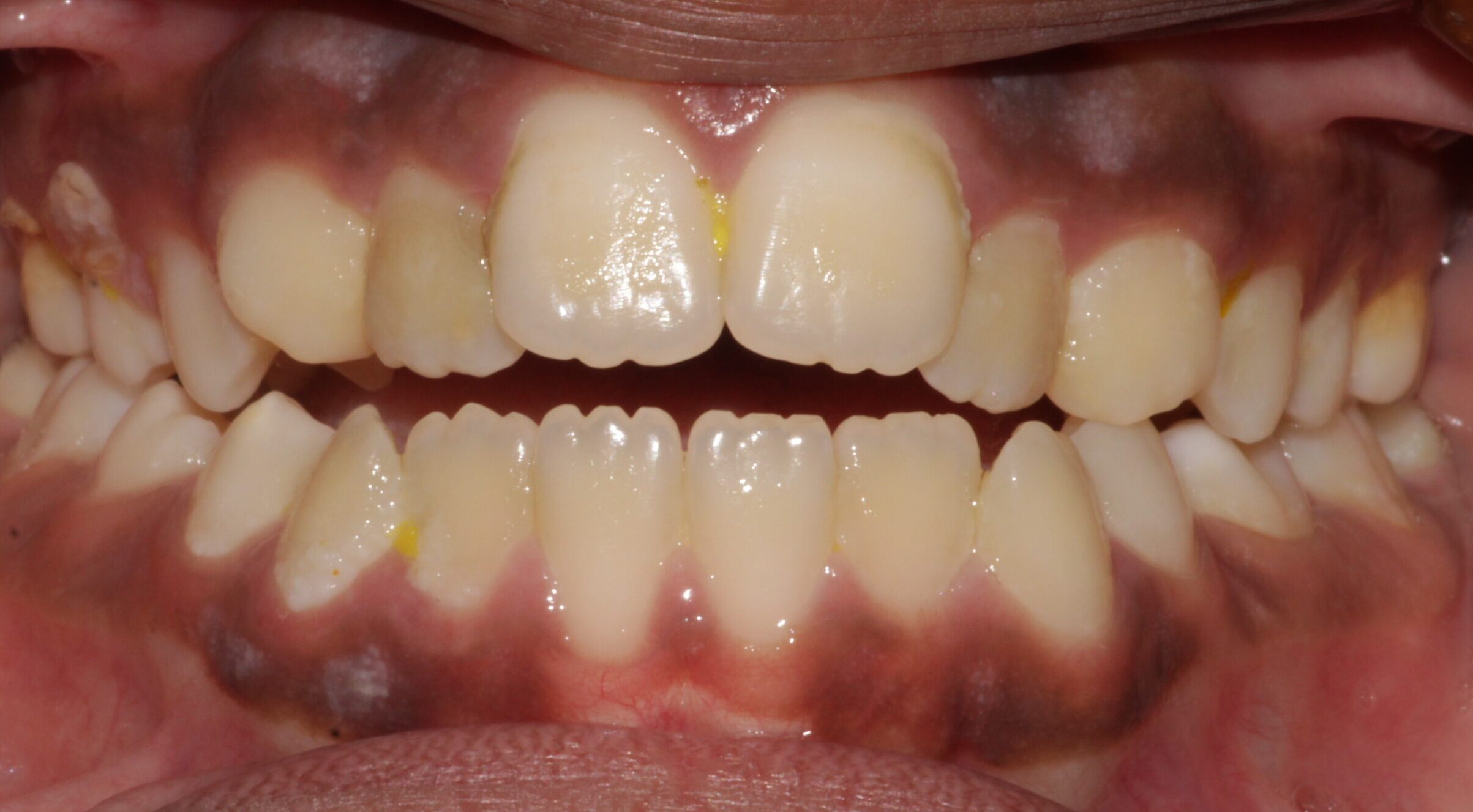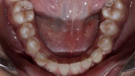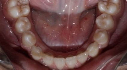 The patient was treated with Self-Ligating (Damon) Braces to correct the crowding, crossbite, and close the front teeth, thereby improving chewing function.