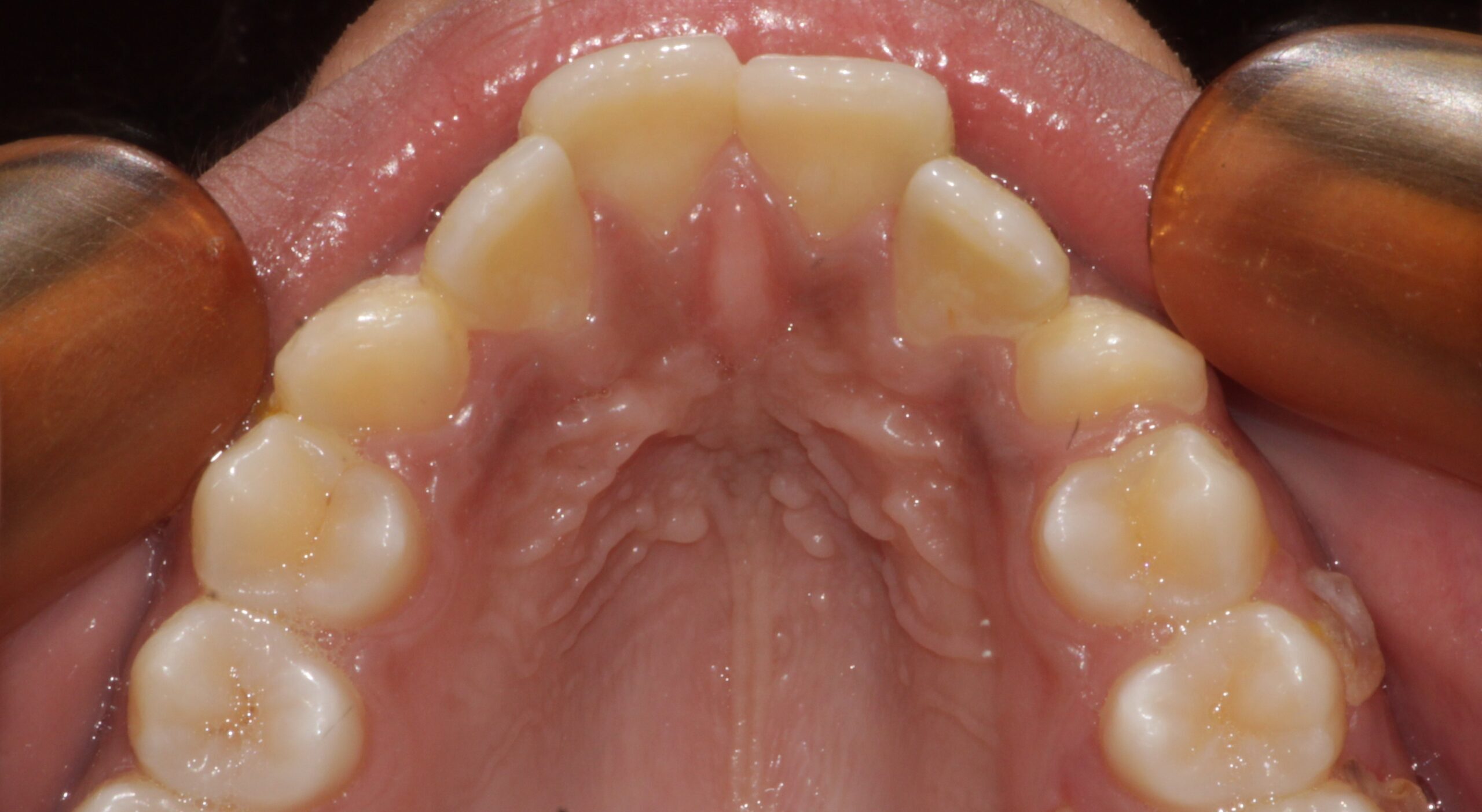 The patient had difficulty chewing due to an open bite, crowding of teeth, and a mild crossbite.