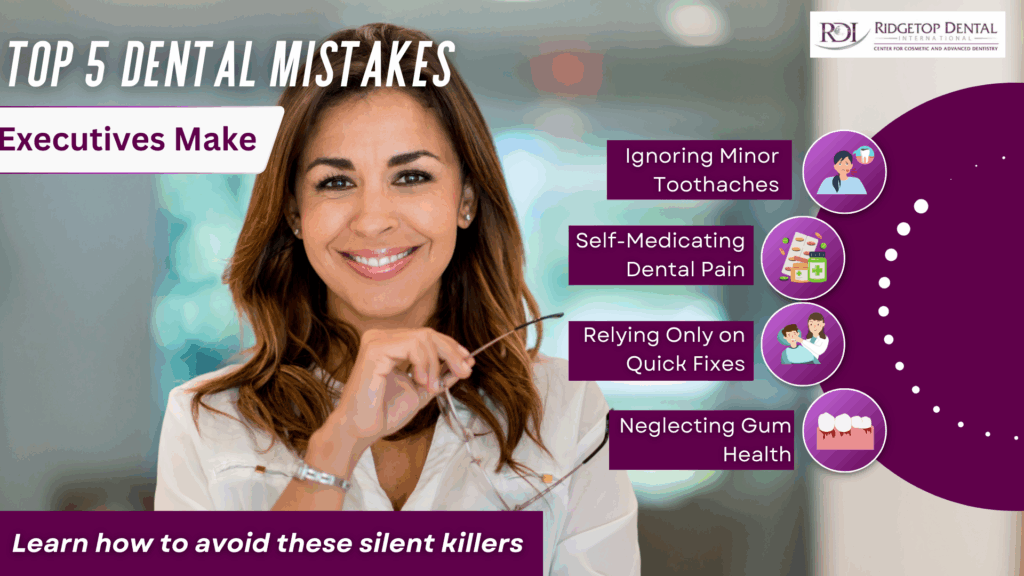 At Ridgetop Dental International, we’ve seen how high-performing executives often fall into the same avoidable traps, costing them time, money, and peace of mind later.